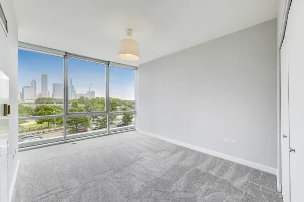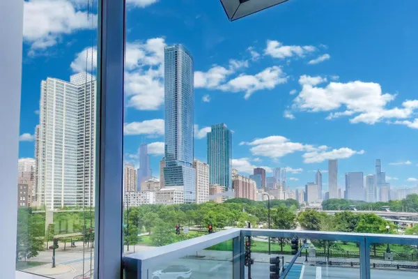 Rare North-Facing Corner Unit with Stunning City & Park Views - One Museum Park West. Experience elevated city living in this one-of-a-kind, oversized one-bedroom corner unit-the largest of its kind in the building-with panoramic views of Chicago's iconic skyline and Grant Park. Located in the prestigious One Museum Park West, this luxury home features an open floorplan with floor-to-ceiling windows that flood every room with natural light. Enjoy hardwood floors in the living area, a designated, separate dining room area, and a expansive kitchen with granite countertops, a breakfast bar, and stainless appliances. What truly sets this unit apart is the unique bonus room adjacent to the kitchen, surrounded by windows, perfect as a home office, reading nook, or breakfast area. The marble bathroom includes a large walk-in shower. Additional highlights include a large, private balcony, in-unit washer/dryer, new carpet in the bedroom, fresh paint, and upgraded lighting throughout. Residents enjoy world-class amenities: 24-hour door staff, concierge, indoor pool, spa, fitness center, sauna, sundeck with grills & fire pit, theater, business center, children's playroom, pet spa, dog run, and an elegant club room with billiards and catering kitchen. Unbeatable South Loop location-just steps to Grant Park, Lake Michigan, museums, Soldier Field, bike paths, restaurants, shopping, and public transit. Don't miss this rare opportunity to own a truly unique and luxurious home in one of Chicago's premier high-rises! Garage parking available.