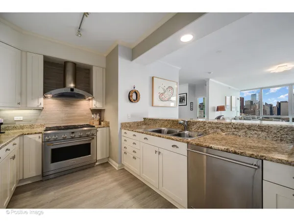 This South Loop luxury condo at 1201 S Prairie Ave offers 1,700 square feet of sophisticated living space with unrivaled views of Grant Park, Navy Pier, and the Chicago skyline. This impeccably maintained two-bedroom residence features floor-to-ceiling windows overlooking trees, park and lake, with elegant wide-plank flooring that flows into a chef's kitchen equipped with stainless steel appliances, a six-burner range, and custom stone countertops. The split-bedroom floor plan includes sleek porcelain bathrooms and professionally organized closets. As a resident of The Grant, you will enjoy five-star building amenities including an indoor pool, a state-of-the-art fitness center, and an updated media room-all just steps from the Museum Campus and Lakefront Trail. One prime parking space is included with this must-see Chicago real estate gem.